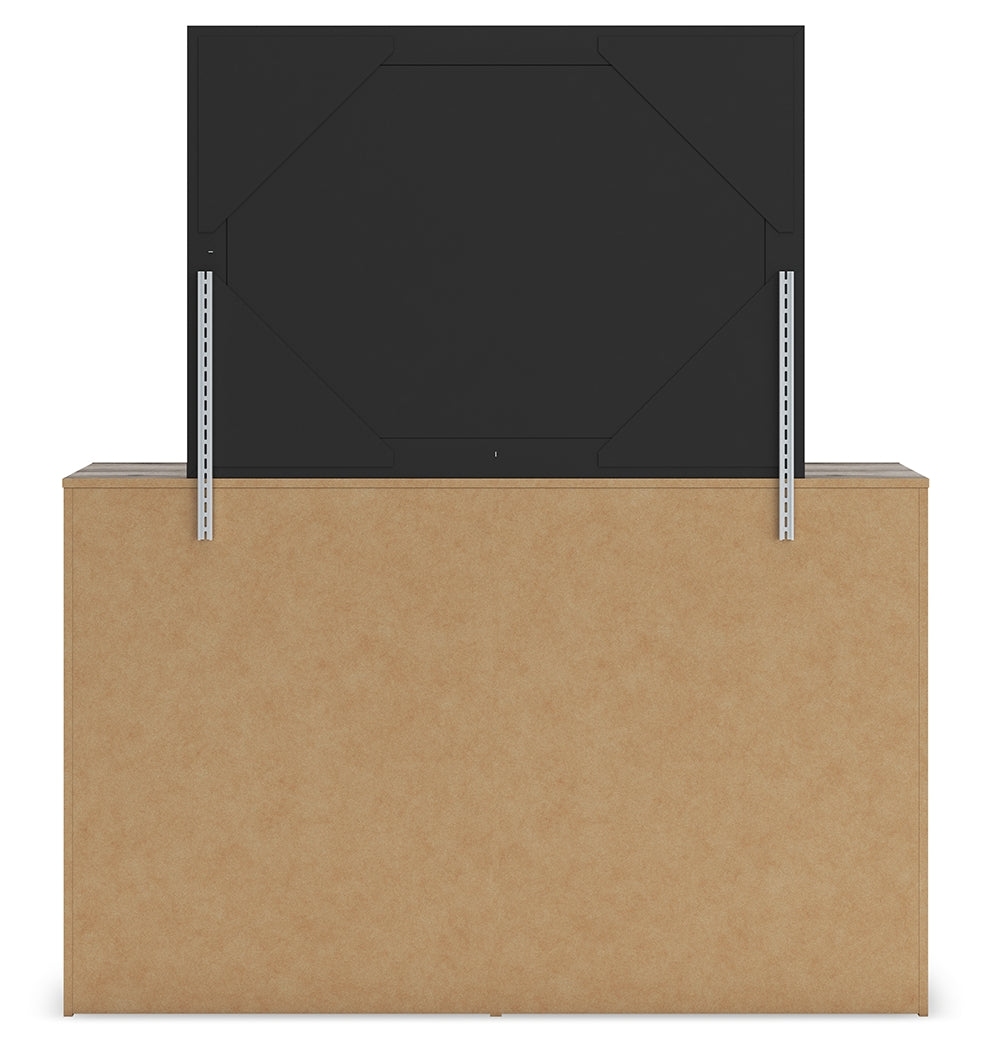 Combining a casual aesthetic with functional flair, this dresser with mirror suits styles from rustic to industrial. Its smooth-gliding drawers store everyday essentials with ease, from clothes to bed linens. Elongated drawer pulls in a dark hue polish off the look, harmonizing beautifully with the weathered gray wood grain.