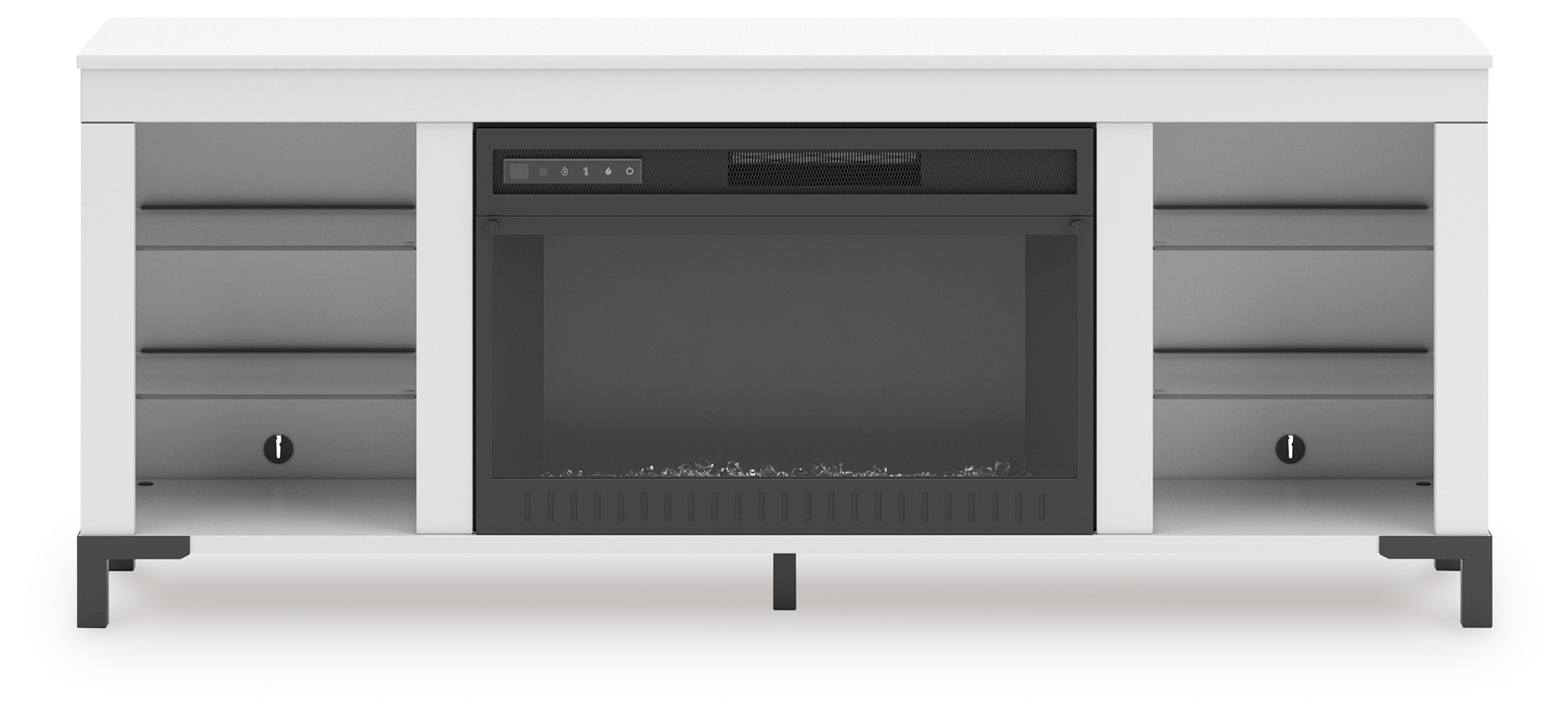 Level up your gaming experience and make movie nights to remember. This TV stand with electric fireplace extends your entertainment beyond the screen. Its built-in fireplace brings the heat, synchronizing with LED backlighting on the shelves. And you can customize the vibe with three trendy color options: blue, white and red. Modern function. Captivating, cool style. With this TV stand, revamp your home’s recreational hub like never before.