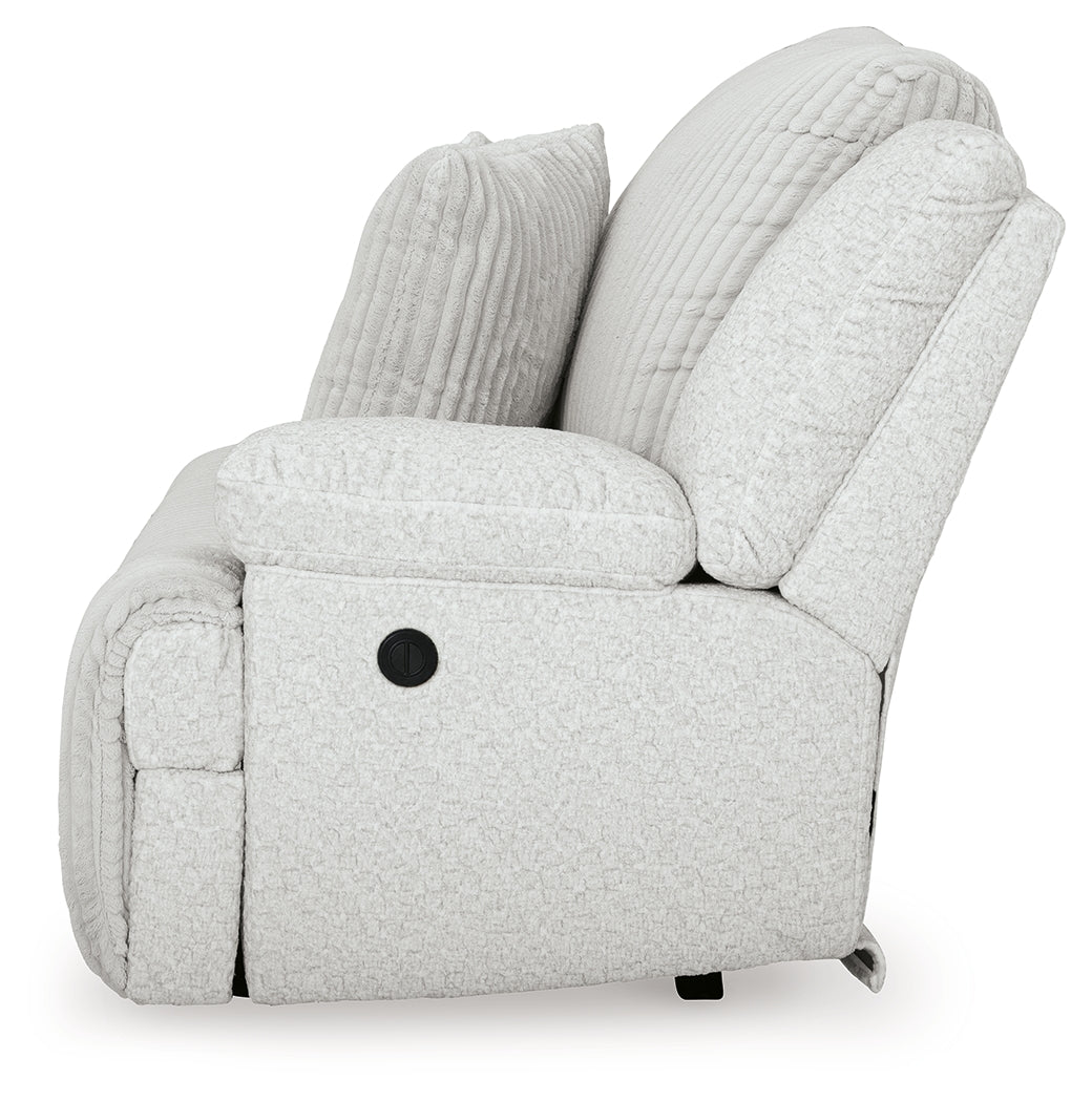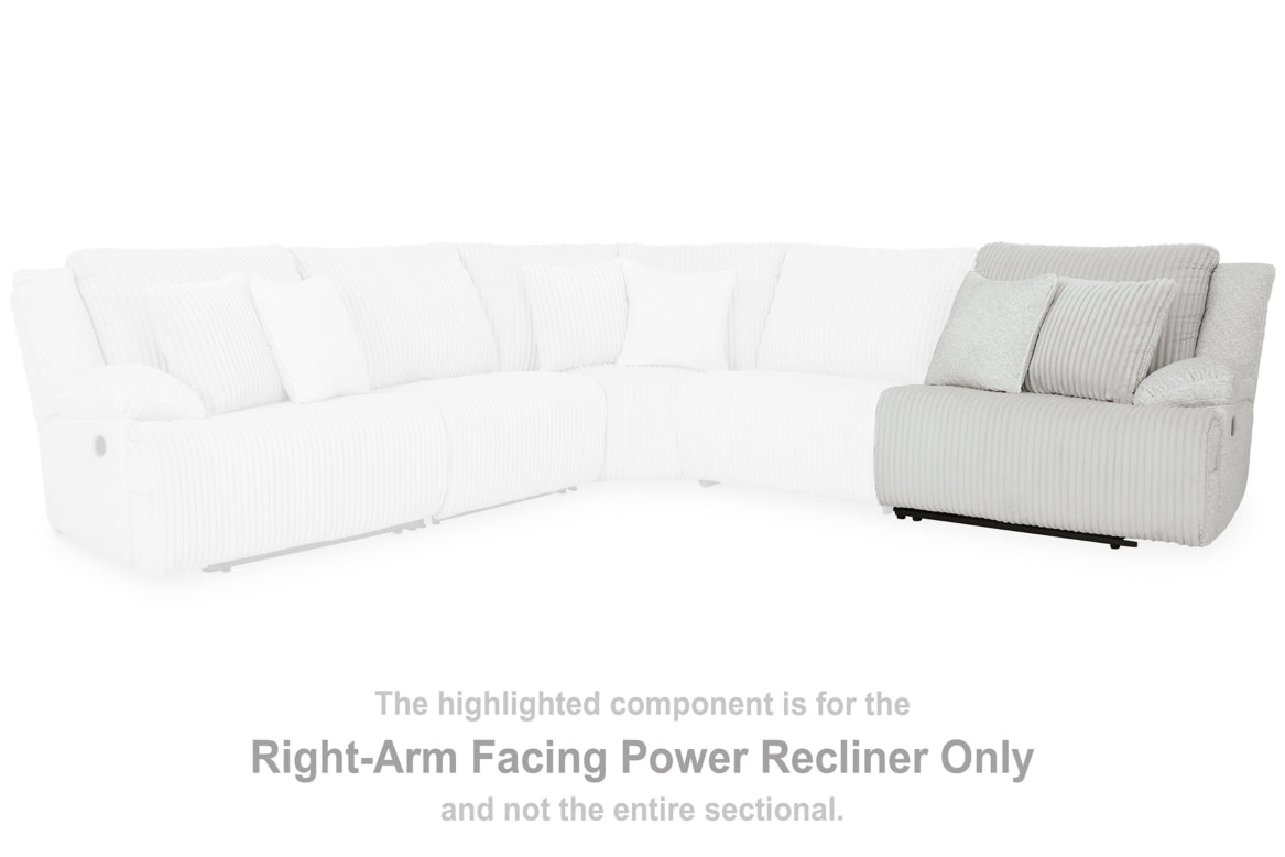 This right-arm facing power recliner is made with polyester upholstery. Pairs with other items in the series to make a sectional.