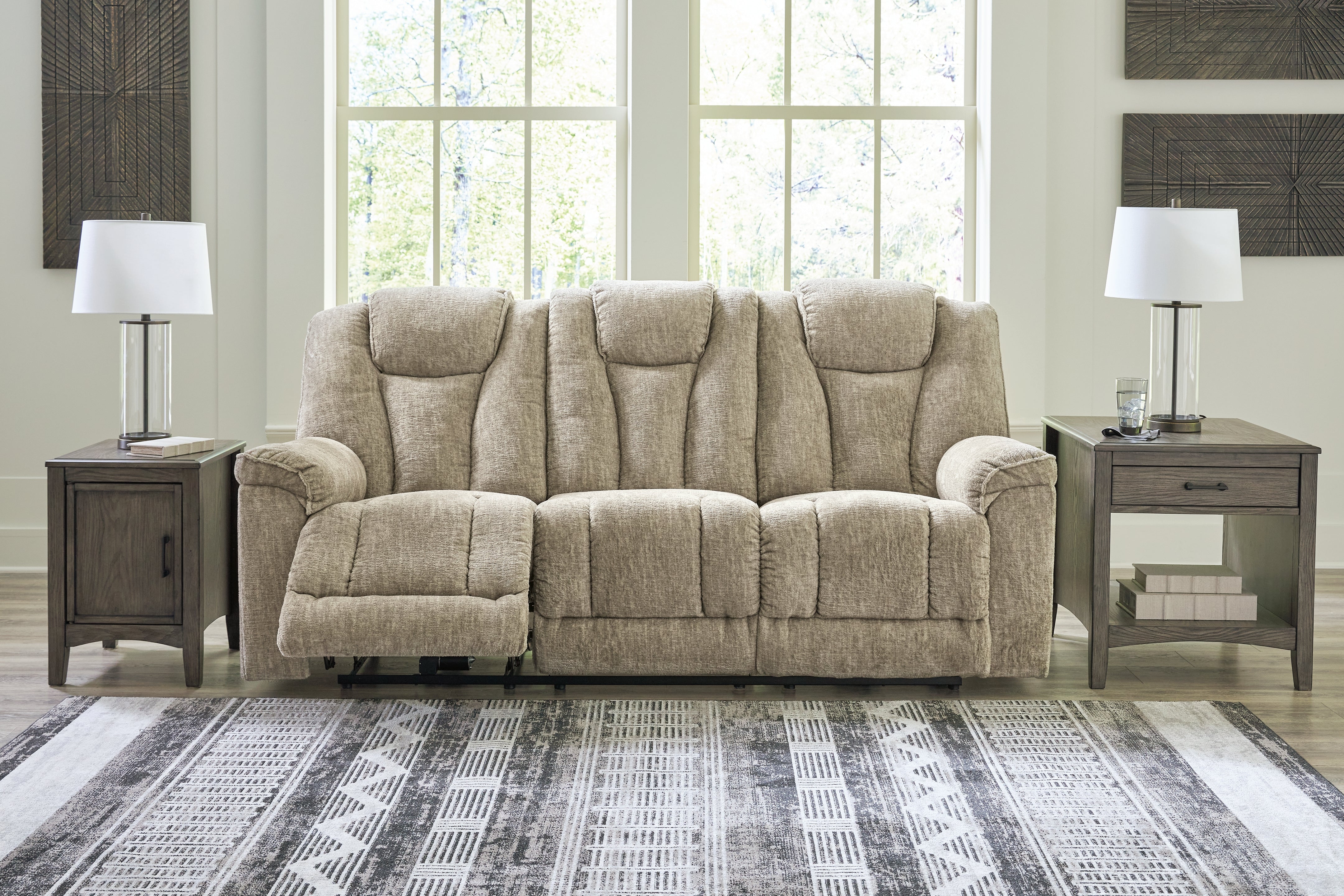 Change can be a good thing—especially when it takes lounging to a whole new level. Covered in high-pile fabric with rich tonal variation, this power reclining sofa cradles you in comfort. And if it’s ambiance and connection you’re after, the sofa sports a blue LED backlight and USB charging to complete the experience.