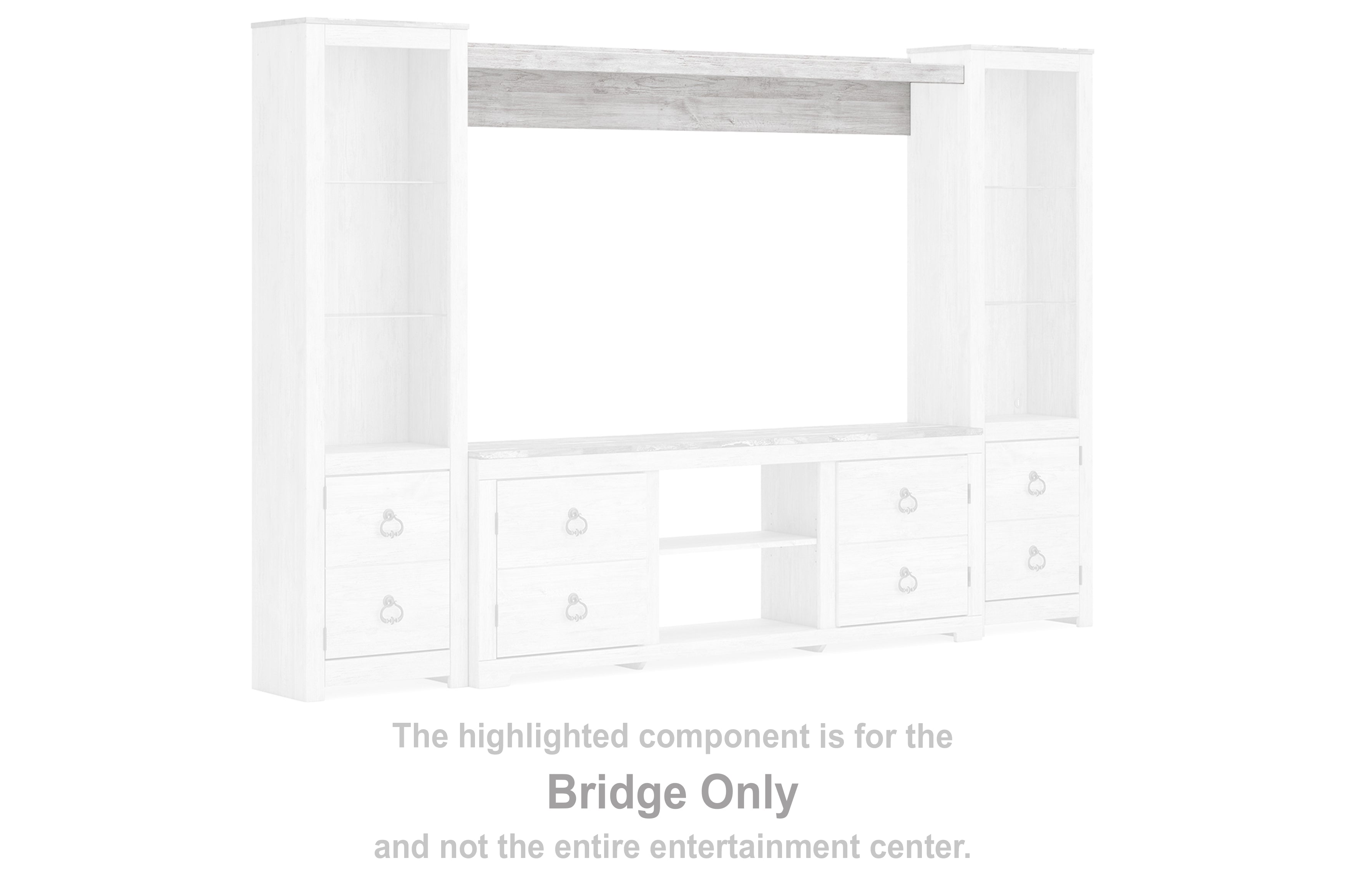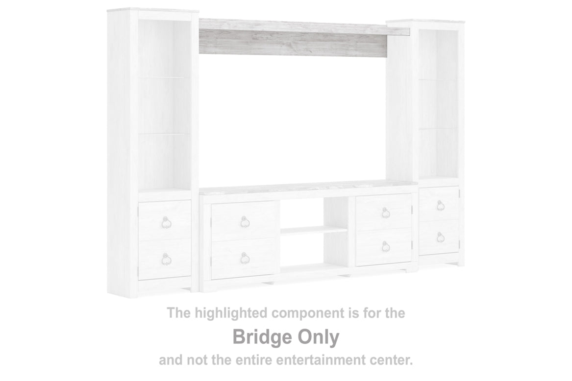 This bridge is made of engineered wood (MDF/particleboard/plywood) and decorative laminate. Pairs with other items in the series to make an entertainment center.